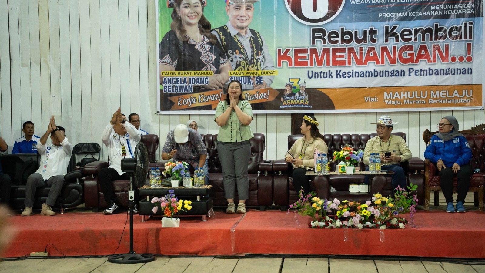 Kampanye pasangan calon Bupati dan Wakil Bupati Mahakam Ulu, Angela Idang Belawan dan Suhuk (ASMARA), di Datah Bilang Raya pada Selasa (13/05/2025).