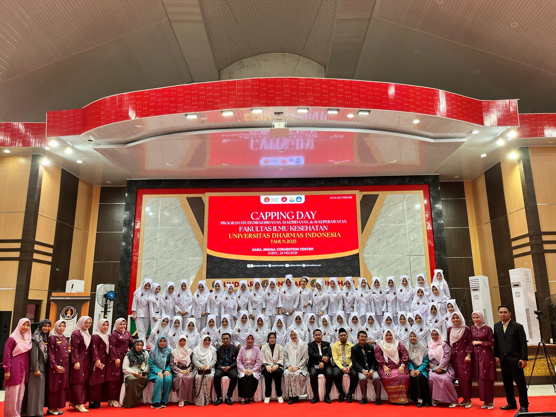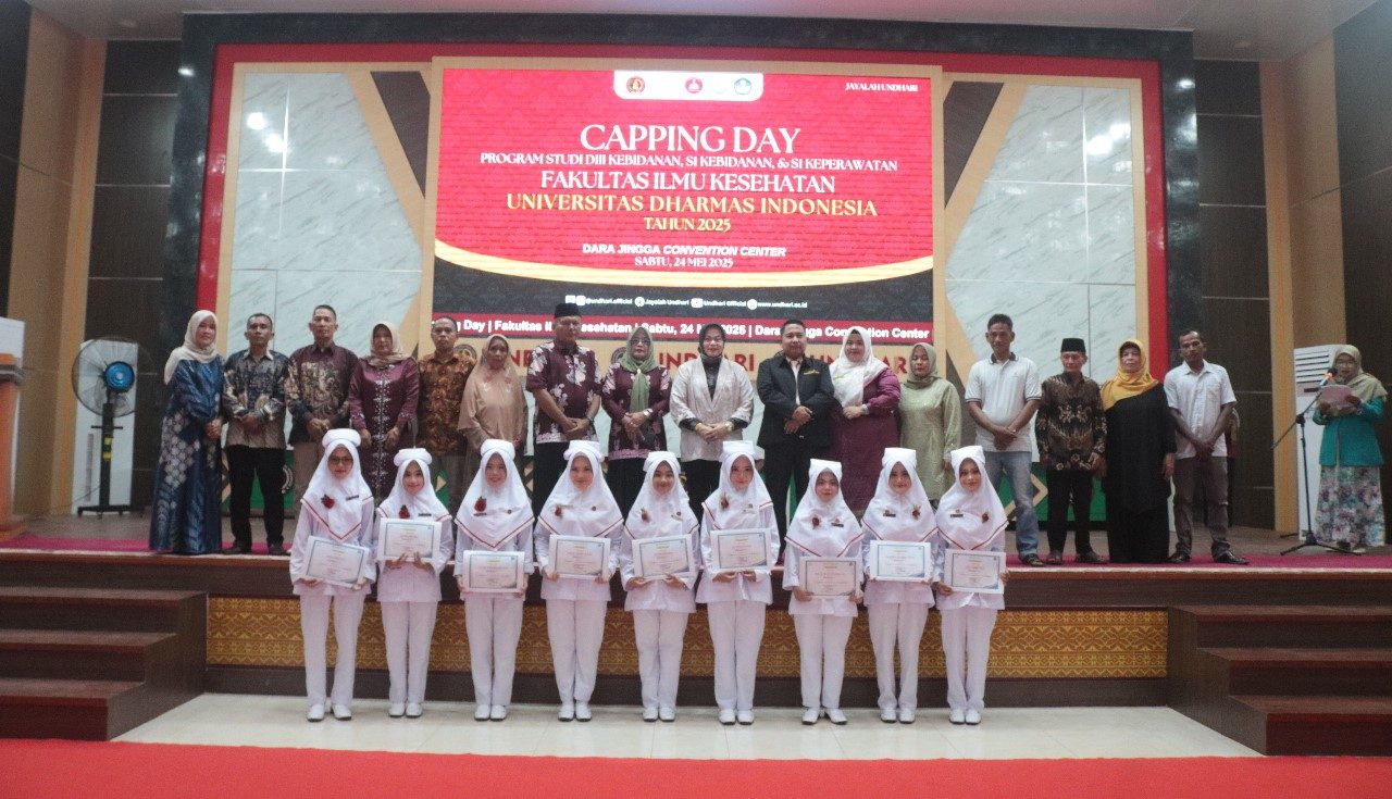 DHARMASRAYA, nusantaranews.info — Suasana khidmat menyelimuti acara Capping Day atau Pemasangan Cap Profesi dan Pengucapan Janji Mahasiswa Fakultas Ilmu Kesehatan (FIKES) Universitas Dharmas Indonesia (Undhari), yang digelar di Dara Jingga Convention Center, Kampus Undhari, pada Sabtu (24/5). Sebanyak 82 mahasiswa dari Program Studi S1 Keperawatan, S1 Kebidanan, dan DIII Kebidanan mengikuti prosesi sakral ini sebagai simbol kesiapan mereka untuk memasuki dunia praktik dan pelayanan kesehatan profesional.