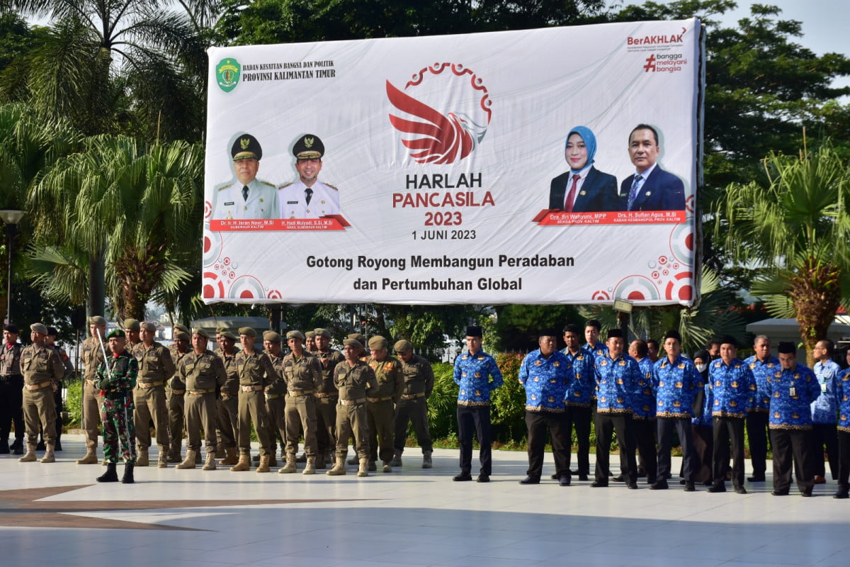 SAMARINDA – Provinsi Kalimantan Timur (Pemprov Kaltim) menggelar Upacara meperingati Hari Lahirnya Pancasila di Lapangan Kantor Gubernur di Jalan Gajah Mada Kalurahan Bugis pada Kamis ( 1/6/2023)